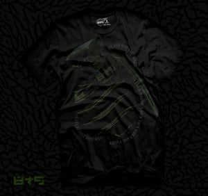 This Grenade Fight t shirt inspired by the actual Foamposite shell, features the subtext "Never Bring A Gun To A Grenade Fight" and is guaranteed to perfectly match the Dark Pine Foams. The dark pine ink is custom and only available from 8&9 Clothing Co.