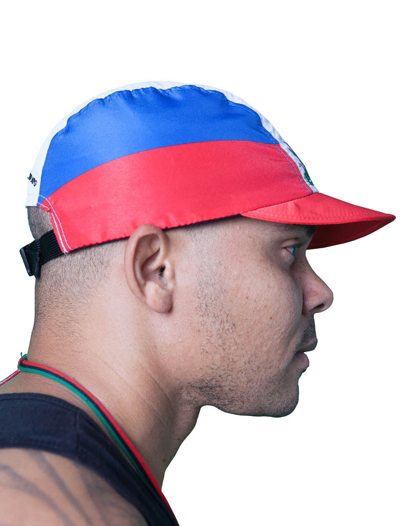 Limited release. Haiti Nylon Cycling Hat 8&9 x Walshy Fire. Collaborative work with an old friend, this cycling hat is constructed from light weight nylon emblazoned with the Haitian Flag on red white and blue lightweight nylon. "1. Because it's swaggy, 2. because we're representing for all Caribbean people! This ones for Haiti." Follow @walshyfire @8and9