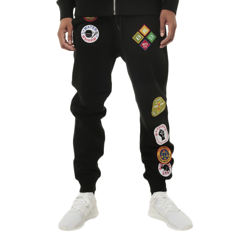 Hood Scouts Collection! Patched our premium sweats in black. Inspired by the tools of the trade, Hood Scouts. Peep the patch details, KAR, Water Whippin, Sharpshooter and more! Fully patched out, DIY style but we did all the hard work. Take a real good look and grab one for the collection. Fit is true to size