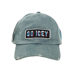Brrr! New distressed polo style dad hat! Icey distressed vintage hip hop hat. Peep the details. Patched out, distressed, enzyme wash, with extra pin back buttons. Icey hip hop inspired dad hat, grab one, you'll love it.