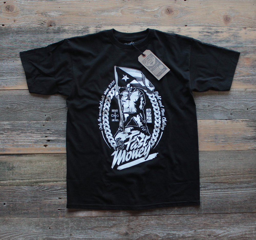 "I got the sweetest heist, million in cash, another 3 in ice...." Inspired by the nicest, BX, Cuban Links, Fast Money and all that. Get yours. Jet black 5.5 oz ring-spun cotton tee with pure white print.