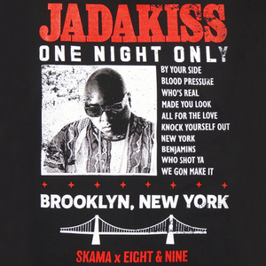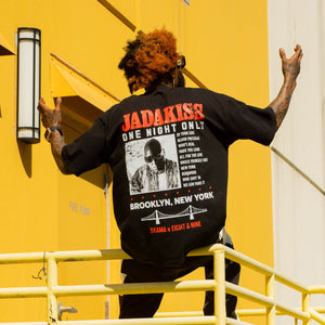 We'll always love BIG! This limited concert style tee features a front print of Jadakiss honoring the legacy of BIG rocking the iconic Coogi sweater, Versace sunglasses and the same legendary chain Biggie wore during his classic Coogi photo shoot. The back features a huge print with a set list dedicated to BIG! This limited edition Notorious Tribute tee is available in sizes small to 3x while they last!
