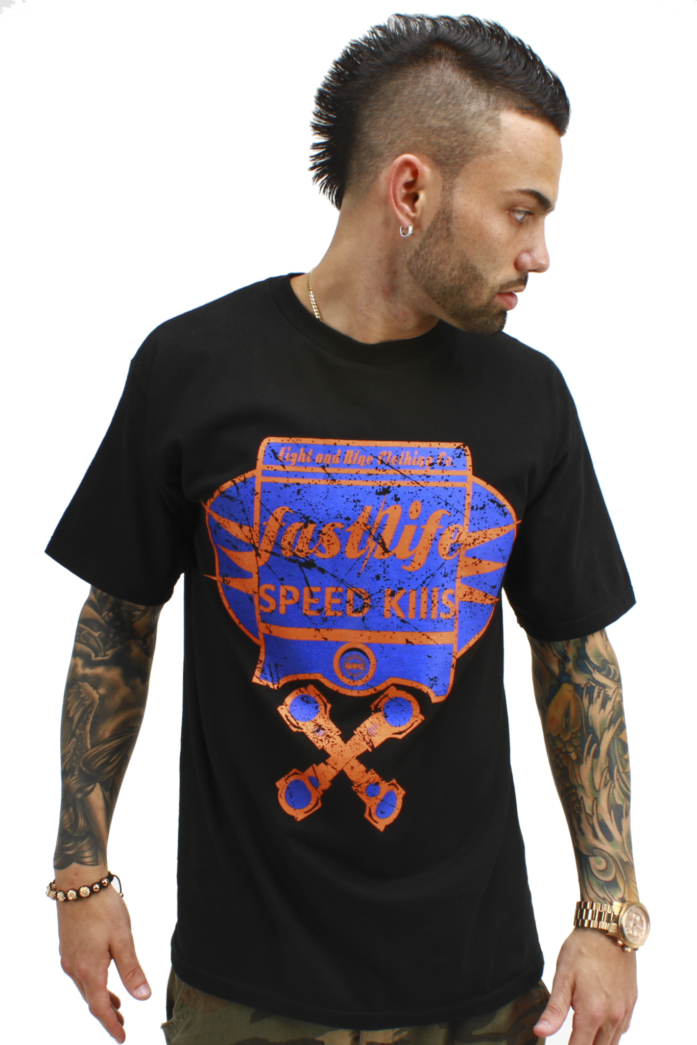 This Fast Life graphic is inspired by 50's gas stations and vintage racing paraphernalia. Definitely a classic NYC color scheme but this shirt is a perfect match for the Air Jordan 4 Cavs releasing May 12, 2012. S/O the Knicks & The Cavs for giving us the excuse to drop a dope color way. What else to say? Brand new tee from your favorite independent streetwear company.