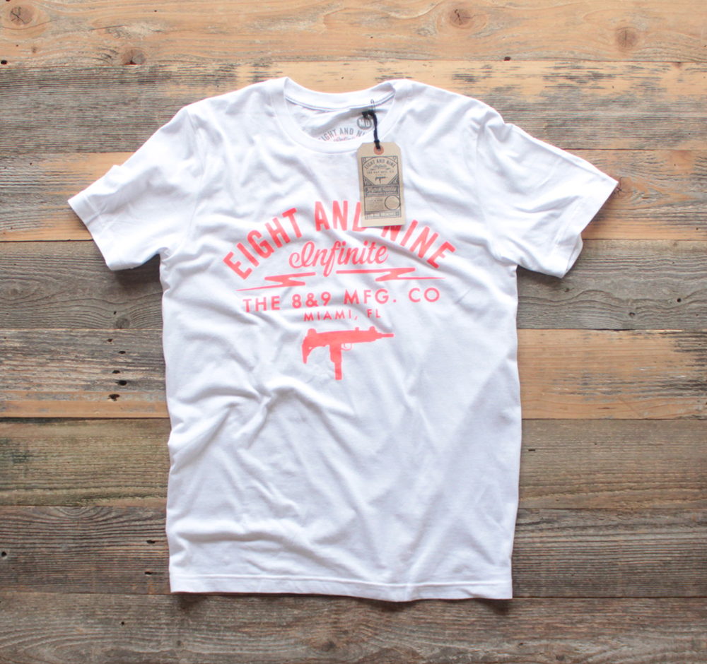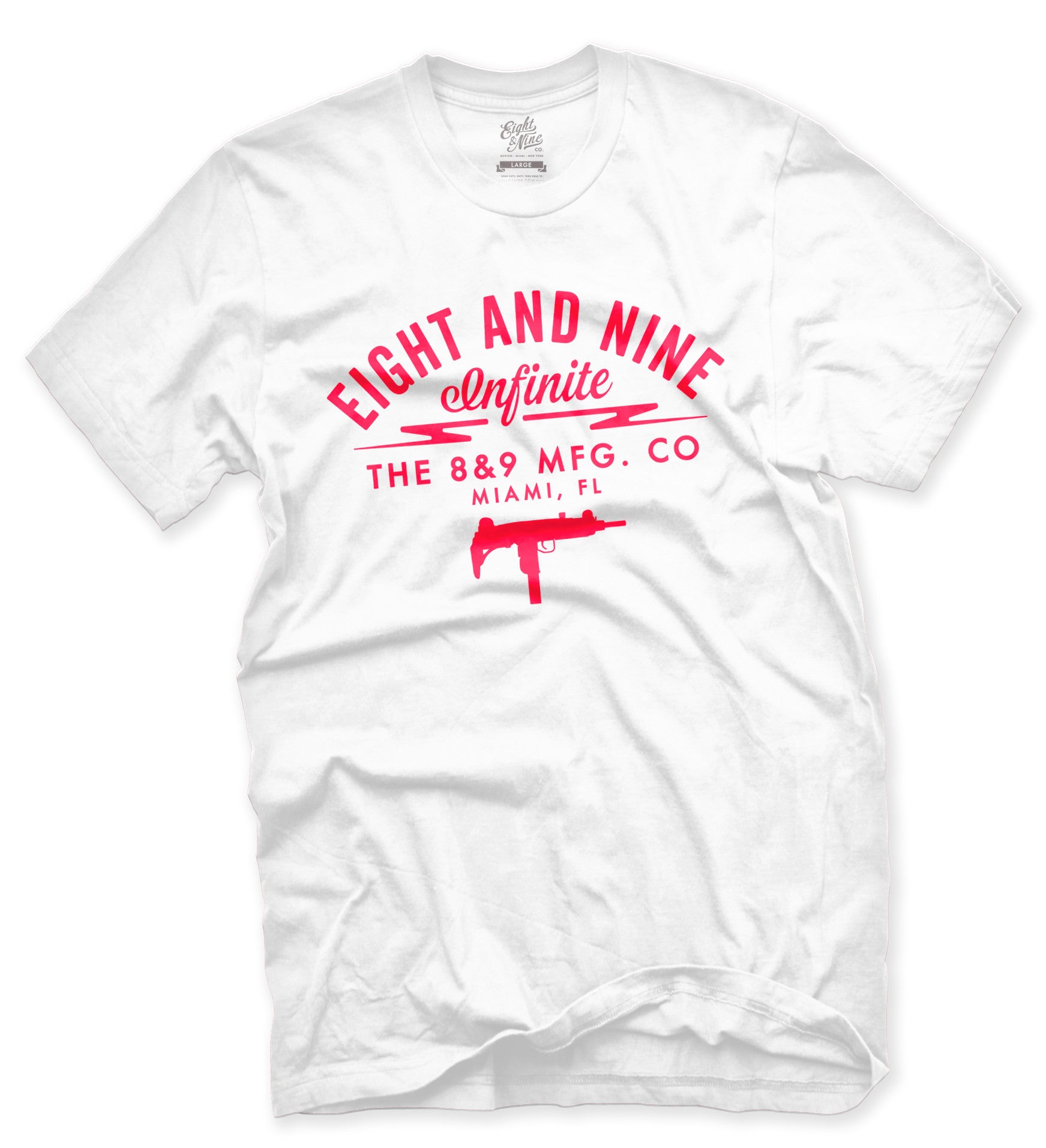 2014 Infinite Supply. UZI Co. 8&9 Manufacturing. #8and9life White super soft lux weight tee w/ infrared print to match the 2014 Jordan Infrared 6 Sneaker Release. This is a guaranteed direct match for the Jordan 6s infrared 2014 release.