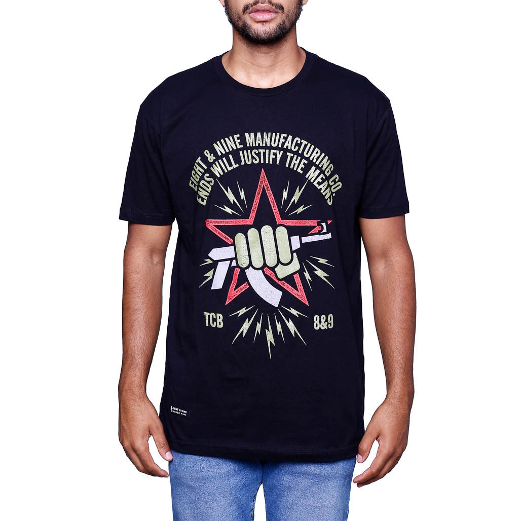 "Ends Will Justify The Means." New piece from the CCCP collection, inspired by the special forces. Beautiful military and red on premium black ring spun cotton. Classic pick up.