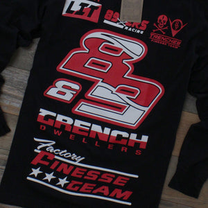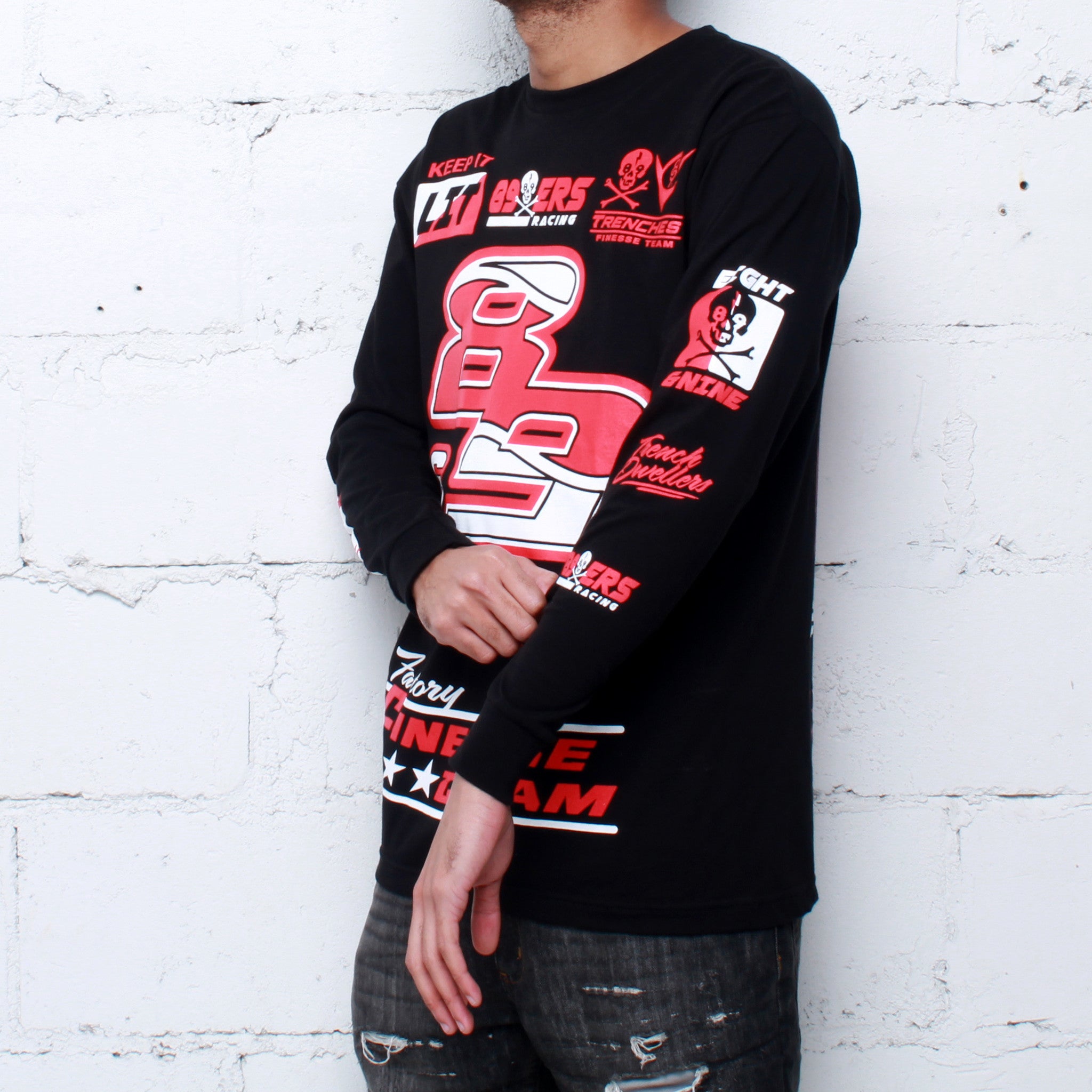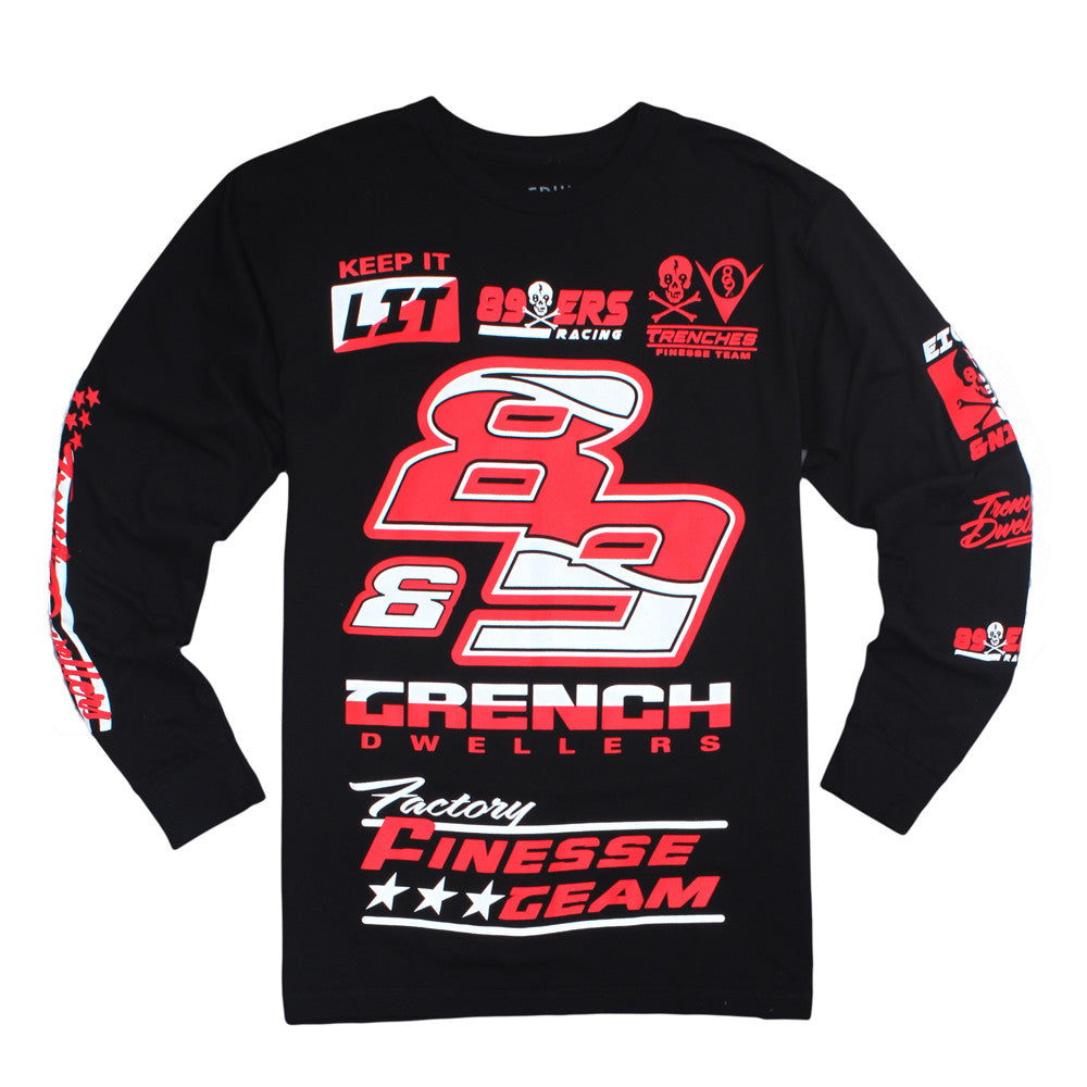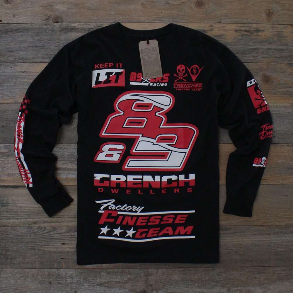 Introducing brand new fit and fabric for our long sleeve tees! For this season we've given them the premium treatment with added length, modern fit and the best 30 singles soft spun cotton you can find! Keep It Lit LS Jersey to match Jordan Bred 11 Low. "Factory Finesse Team." 90's BMX inspirations, jumbo front, back and sleeve prints. Get yours while they last.