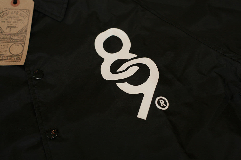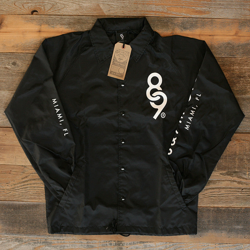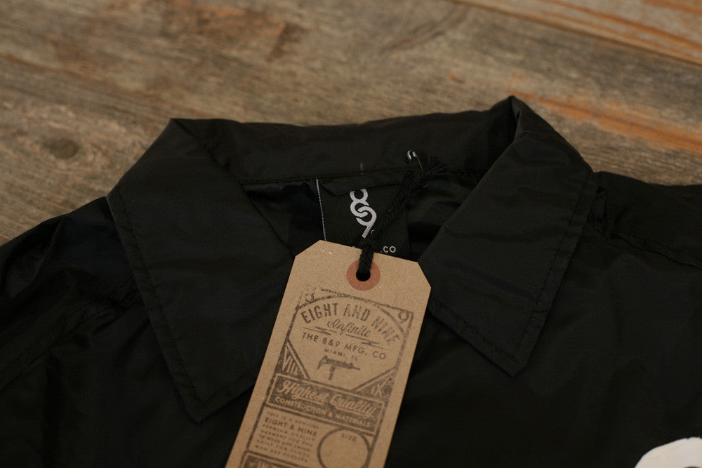 Lightweight for fall. 100% Nylon water repellant windbreaker. Black Coaches Jacket with white Keys logo hit.
