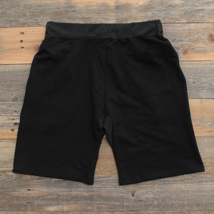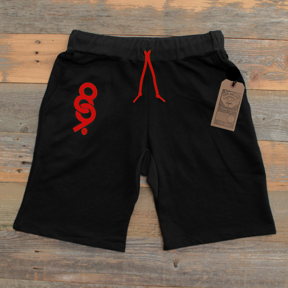 Simplicity reigns supreme. Super luxe 100% cotton french terry sweat shorts made in the USA. Black with red keys logo and matching SB shoe lace draw string. Modern tailored fit. Slight drop crotch. #8and9life
