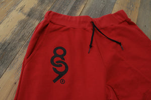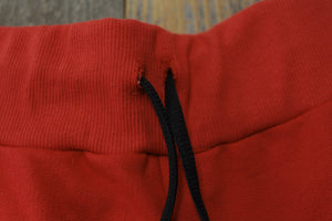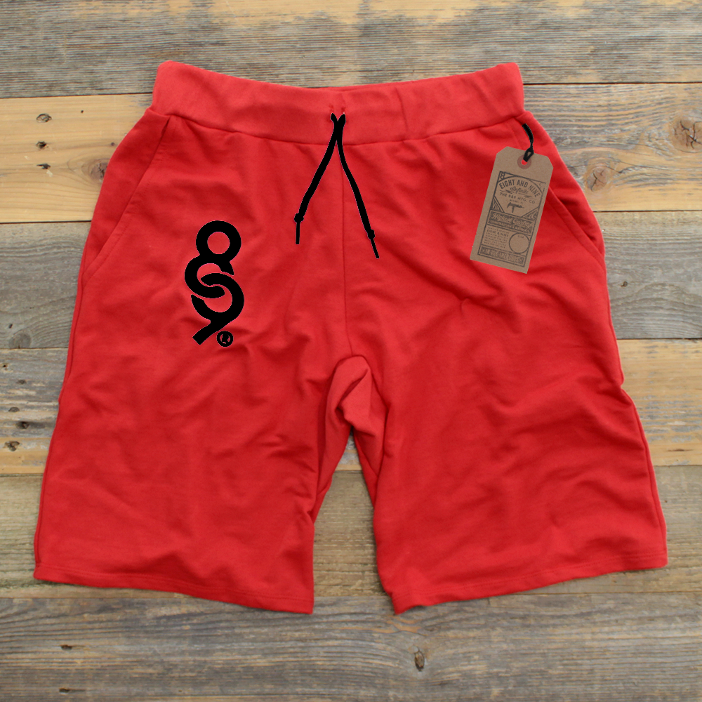 Simplicity reigns supreme. Super luxe 100% cotton french terry sweat shorts made in the USA. Red/Black. SB shoe lace draw string. Modern tailored fit. Slight drop crotch. #8and9life