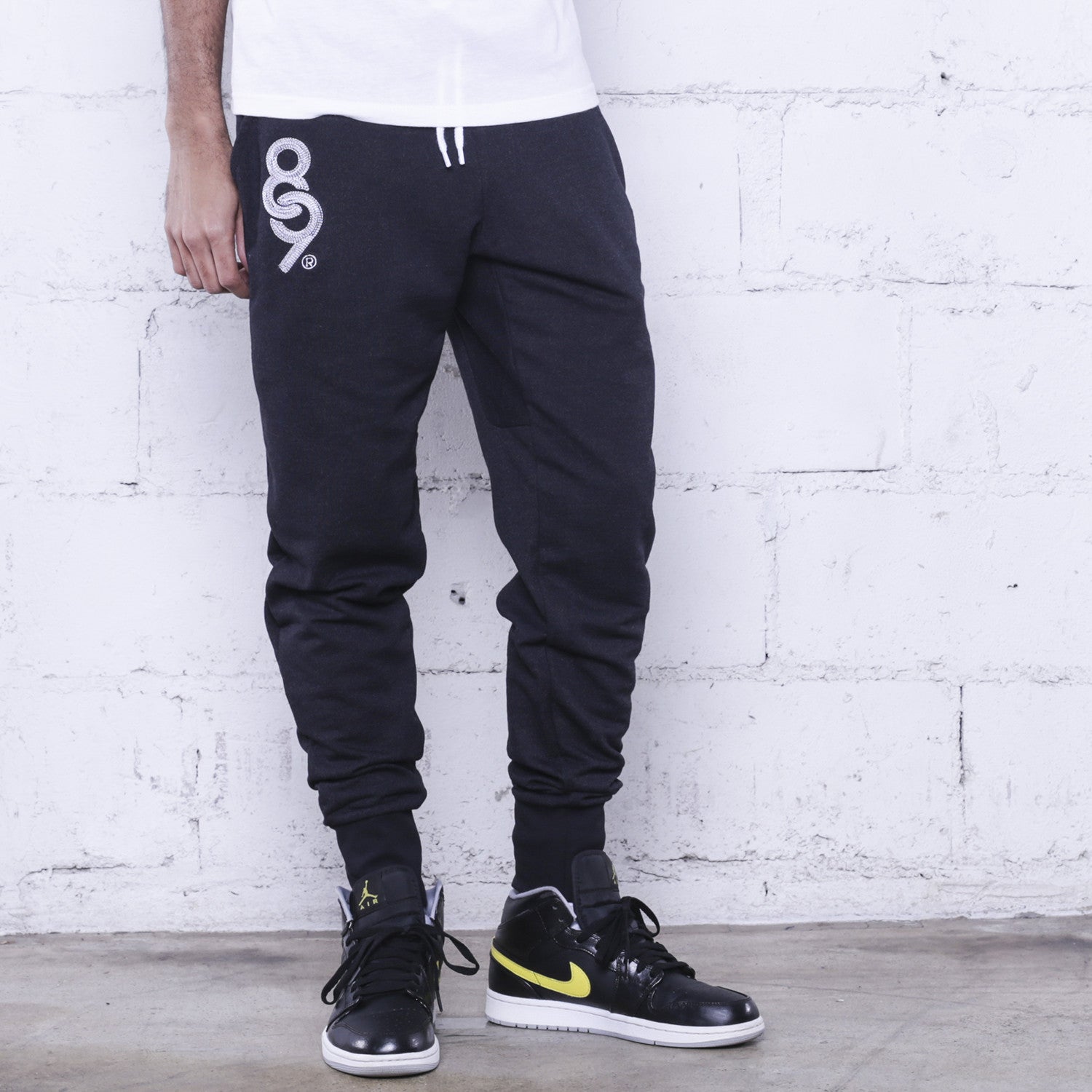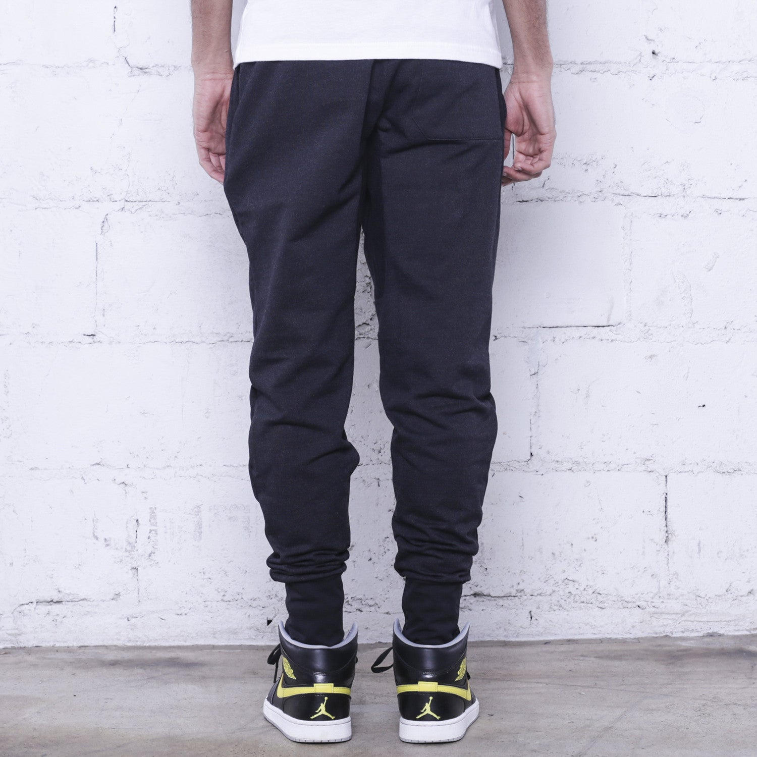 New light-weight French Terry Joggers for all seasons, made in the USA. Speckled black, premium terry jogger with chain stitch Keys logo, elasticized waistband, three pocket styling, rib knit tapered bottom. Modern tailored fit.