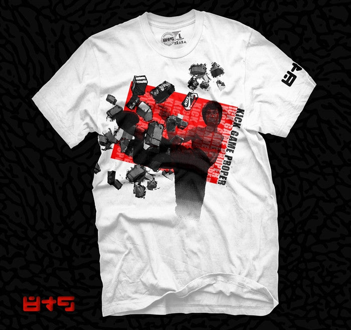 Brand new t shirt from your favorite independent streetwear brand.Running WildThis Kick Game shirt is inspired by the greatest and offered in the Fire Red colorway. Preshrunk 5.5 oz 100% Ringspun Cotton tee shirt constructed with side seams for perfect no twist drape. You'll appreciate the cut right before you become addicted. Impeccable quality. Double-stitched throughout. Shoulder-to-shoulder tape.Street Wear, underground, hip hop, skate inspired clothing by Eight & Nine Designs.8&9 Clothing: Redefining style, thought and motivation.