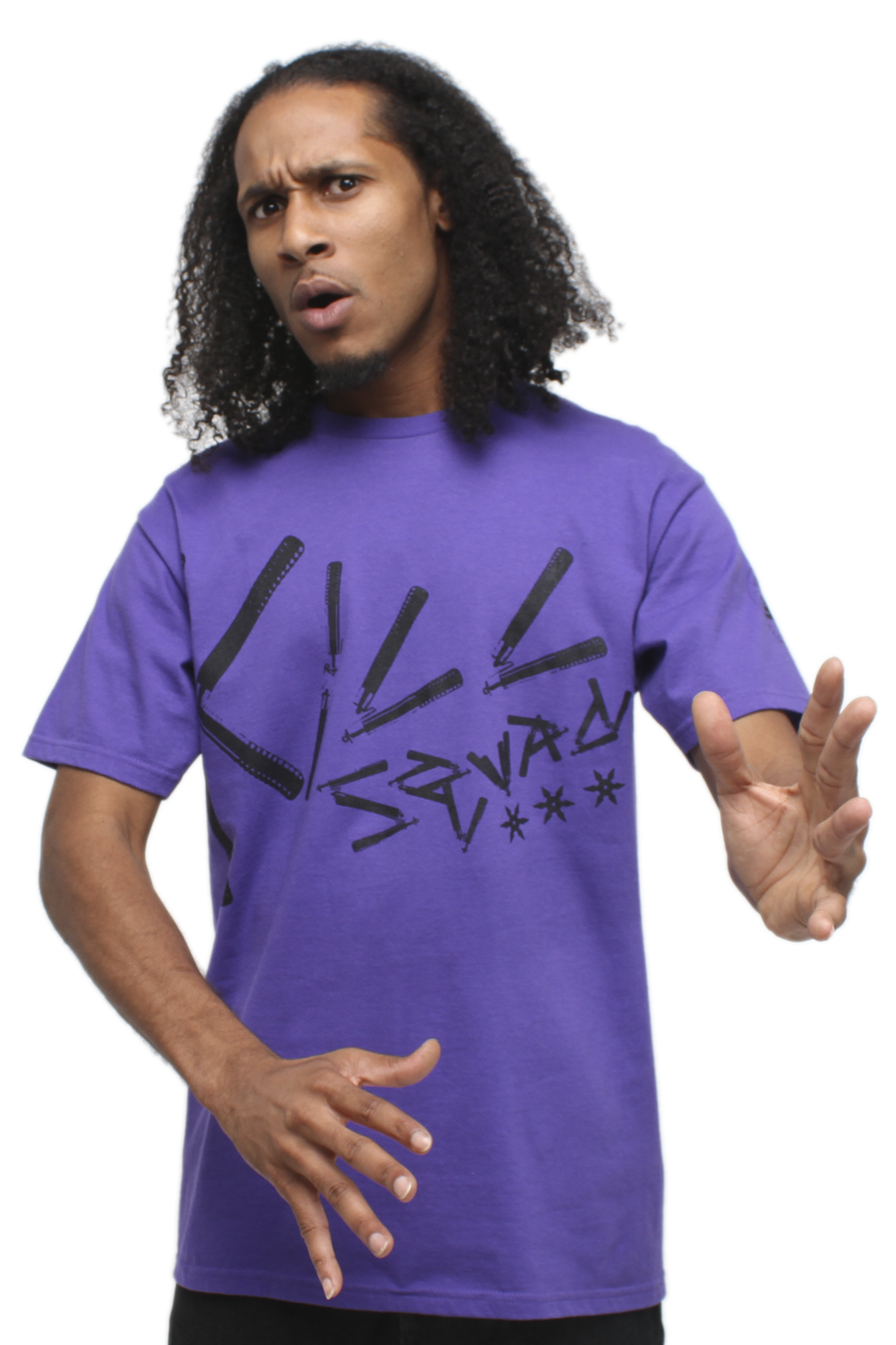Purple/Black Kill Squad Nunchacu t shirt. Nunchucks, chinese stars, Kill Squad. What else to say? Brand new from your favorite independent streetwear company.