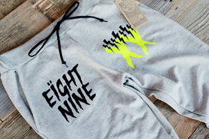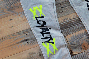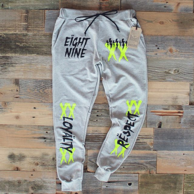 New for Holiday Lobby Runnin' French Terry Yard Sweats. Classic heather and volt colorway. Super luxe 100% cotton french terry sweat pants made in the USA. Heather grey with jumbo volt and black leg hits and sneaker lace draw string. Modern tailored fit. Slight drop crotch, great sweatpant to match anything fire red. #8and9life