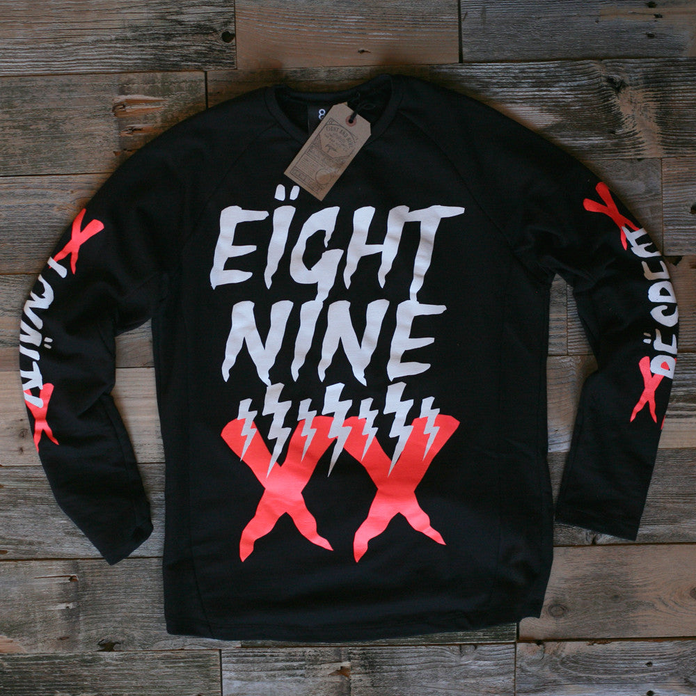 New for Holiday Lobby Runnin' Hockey Jersey. Super luxe 100% cotton french terry hockey jersey with extra length, rounded hem, made in the USA. Black with jumbo infrared and white hits, front, back & both sleeves. Modern tailored fit.