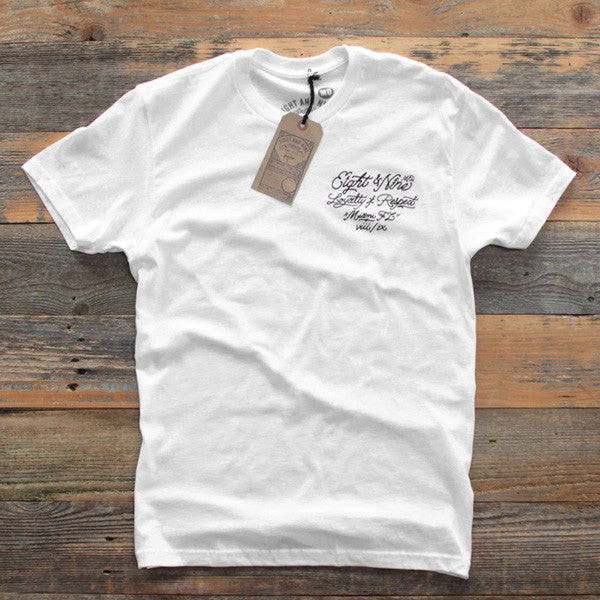 Eight & Nine. Loyalty & Respect. Miami, FL. More than a tattoo. Peep the hand style, super classic black on white. Concord. Definite every day wear, stand Appson couches if you're so inclined. Get yours.