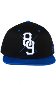 Black/Royal/White Snapback Baseball hat with interlock 8&9 logo and brain gang side embroidery. This is a perfect hat to match Air Jordan Royal 1