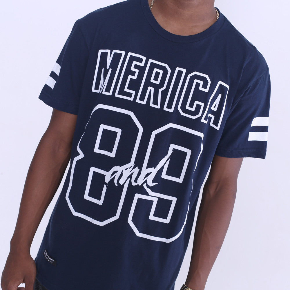 "America Fuck Ya!" Rep your set with this classic gem just in time for the Summer Olympics too. Perfect shirt to match the Olympic pack from Nike or the Jordan 7. Limited release, 189 pieces, no restocks. Navy and White.