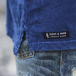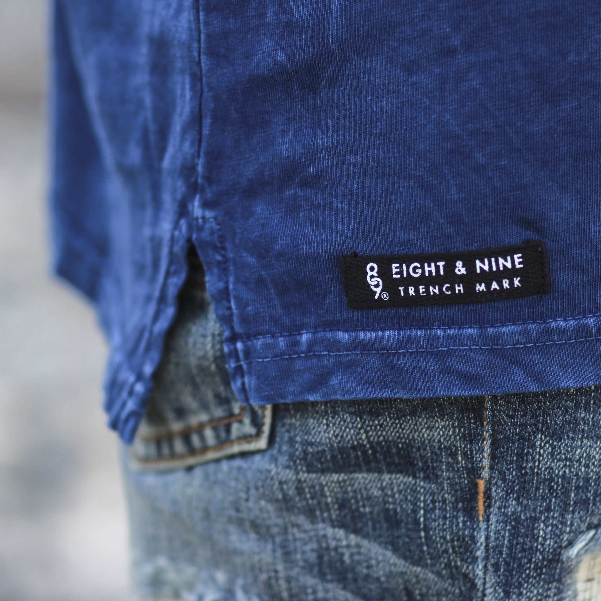 New Long Line T Shirt for 2016. Premium garment with a weathered look to save you years of sleeping in a gutter. Elongated Mineral Wash T Shirt in Navy with Trench Mark woven, tonal mini keys hit. Super soft, 30 singles cut with added length for a modern fit, hi-low finish. Peep the details.
