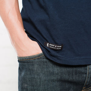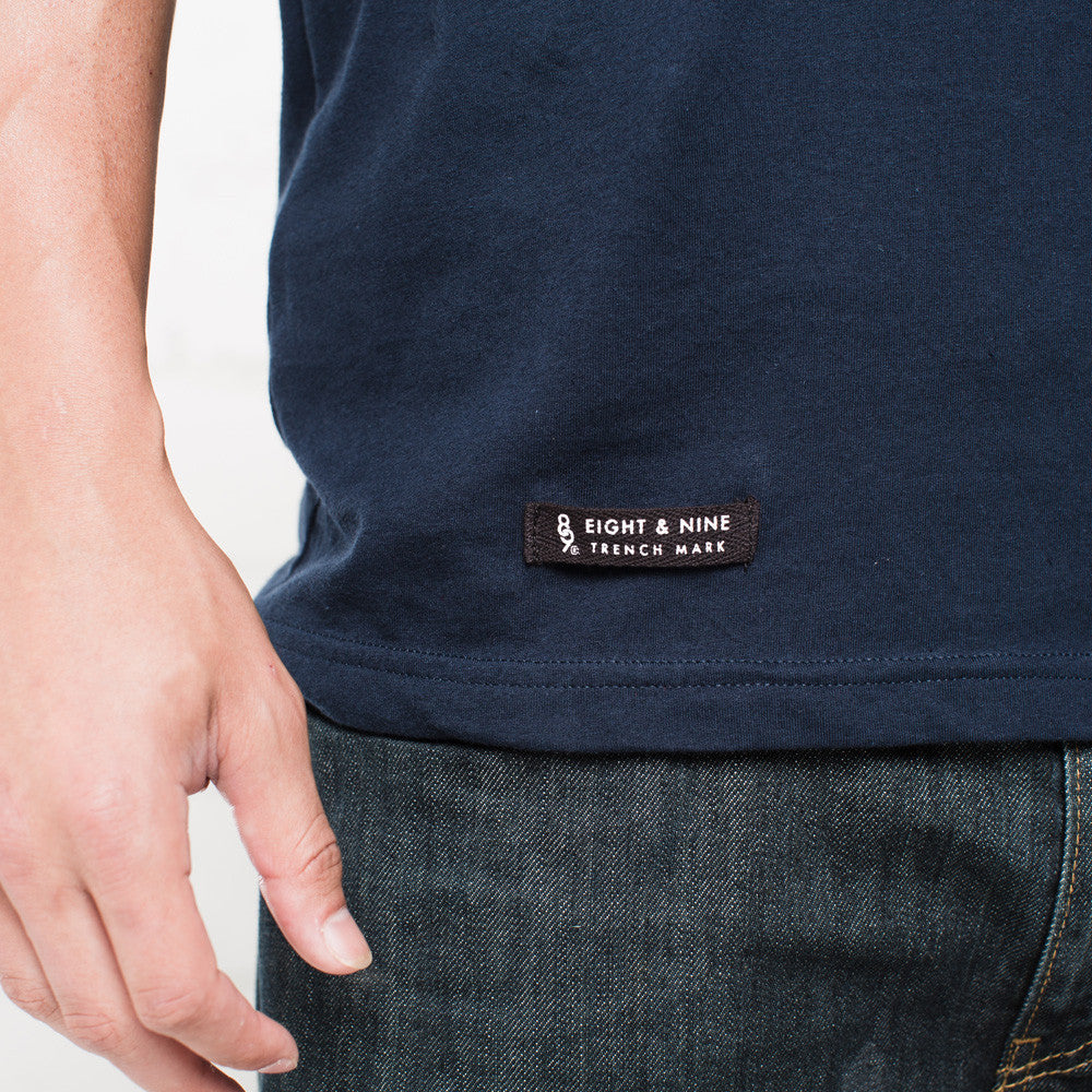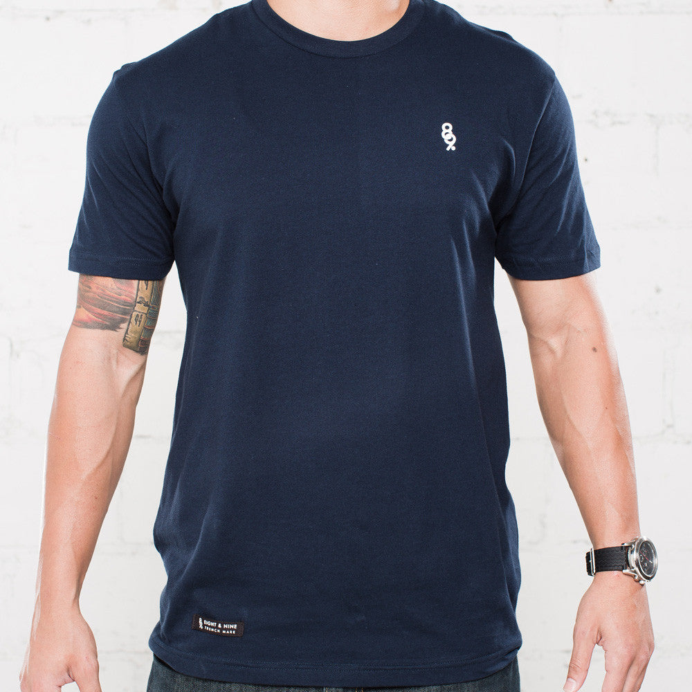 Simplicity reigns supreme. New release for all seasons. We've combined premium ring-spun cotton jersey and our classic 8&9 fit in this not so basic t shirt. Definitely a daily driver, grab a few. Dark navy with white mini keys logo.