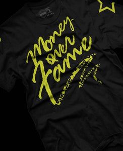 Tee features a Dollar Sign on one sleeve Hollywood Star on the other. The choice is easy, Money Over Fame, get your shirt to match the Metallic Red Foamposites from us. This print is not FOIL! No tin man print.