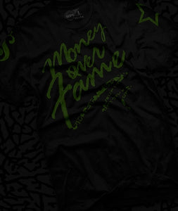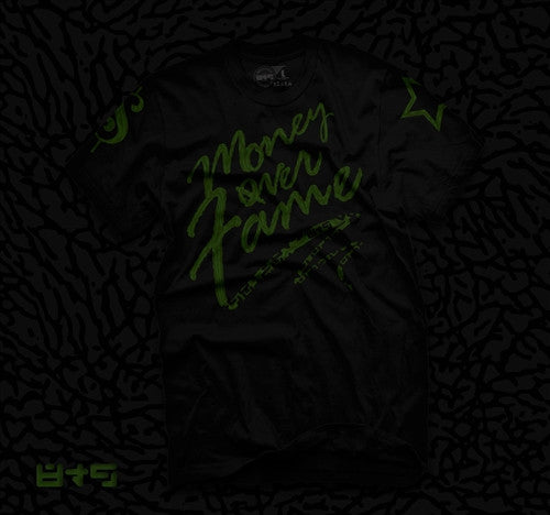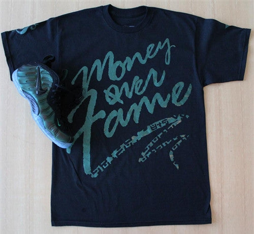 Money Over Fame t shirt is guaranteed to be the best match you'll find anywhere for the Dark Pine Foams.