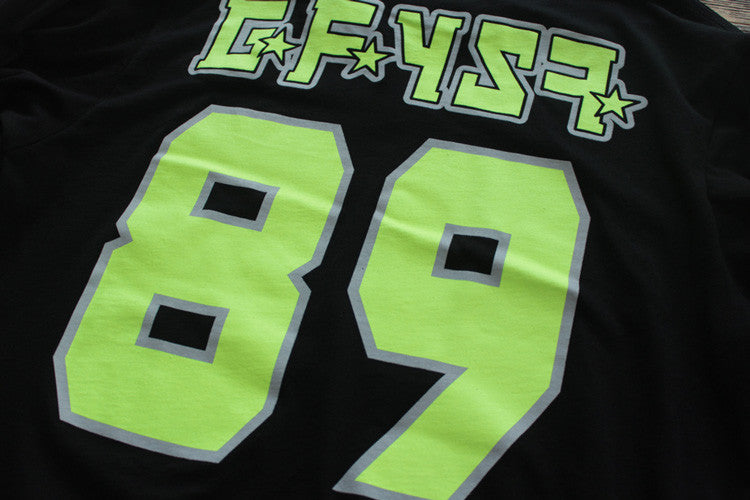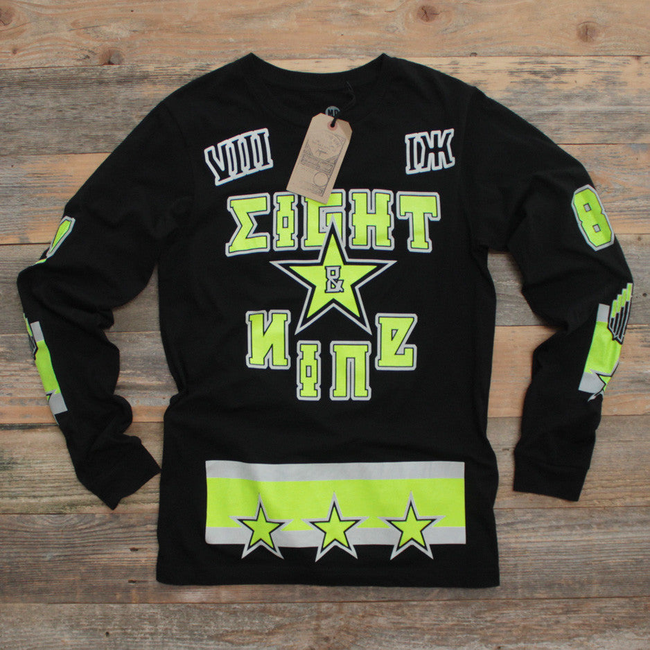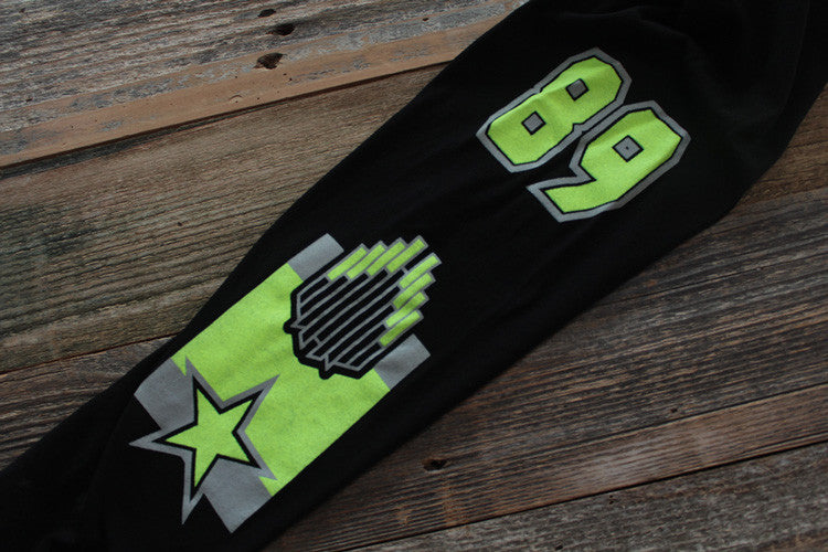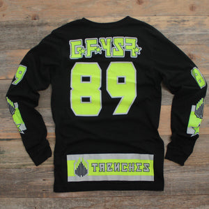 Moscow CSKA inspired long sleeve hockey jersey tee. Fall '14 tribute to the greatest game on earth. Classic Black/Volt/Cement color scheme. Giant back #GFYS print and number 89. #8and9life