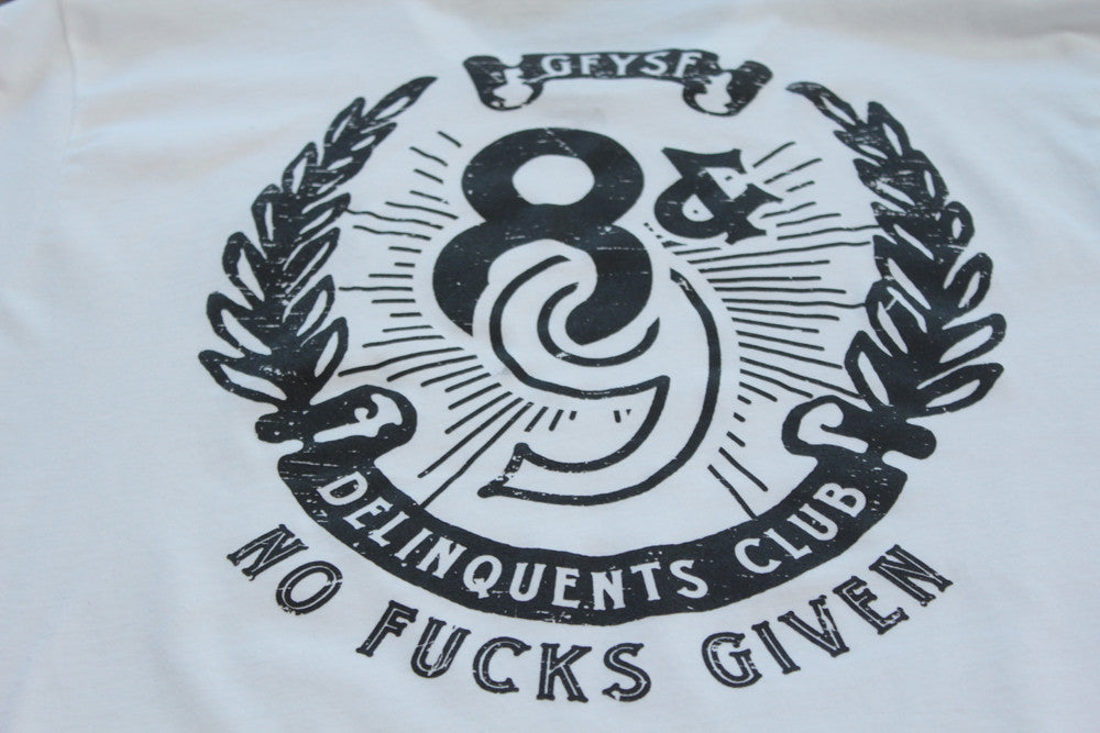 Keys logo gets the updated treatment for Fall '14. Left chest, jumbo back print. Delinquents club. #8and9life classic white and black print. Definitely one for your collection.
