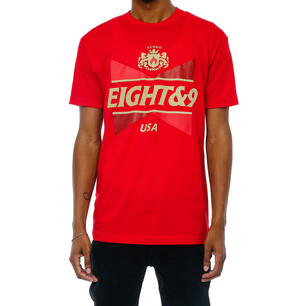 No squares in this circle. Our premium ring spun mens cotton t shirt with a modern fit. You can't lose with the red on red color scheme and gold accents. #8and9life