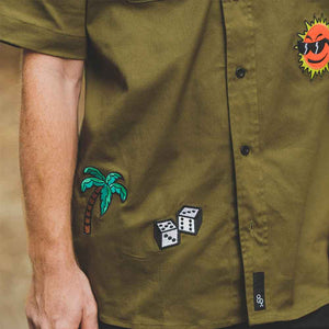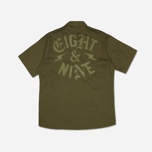New luxury work sets available! Huge 8&9 MFG print and multiple embroideries on this premium cut and sew button up shirt. No Worries sets available in 2 colorways!