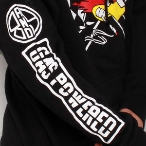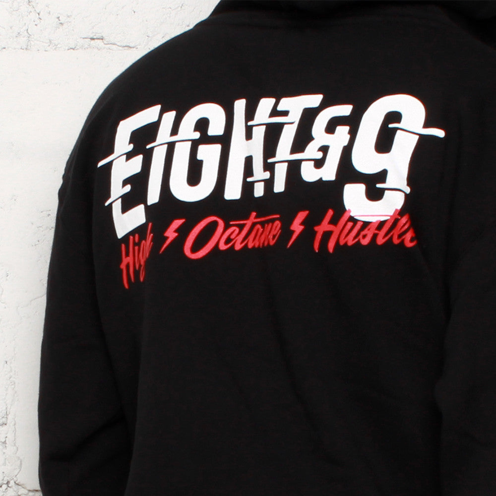 Premium black heavyweight hoodie. High Octane & Hustle! Gas Powered, Octane Hoodie black w/ sport red and yellow.
