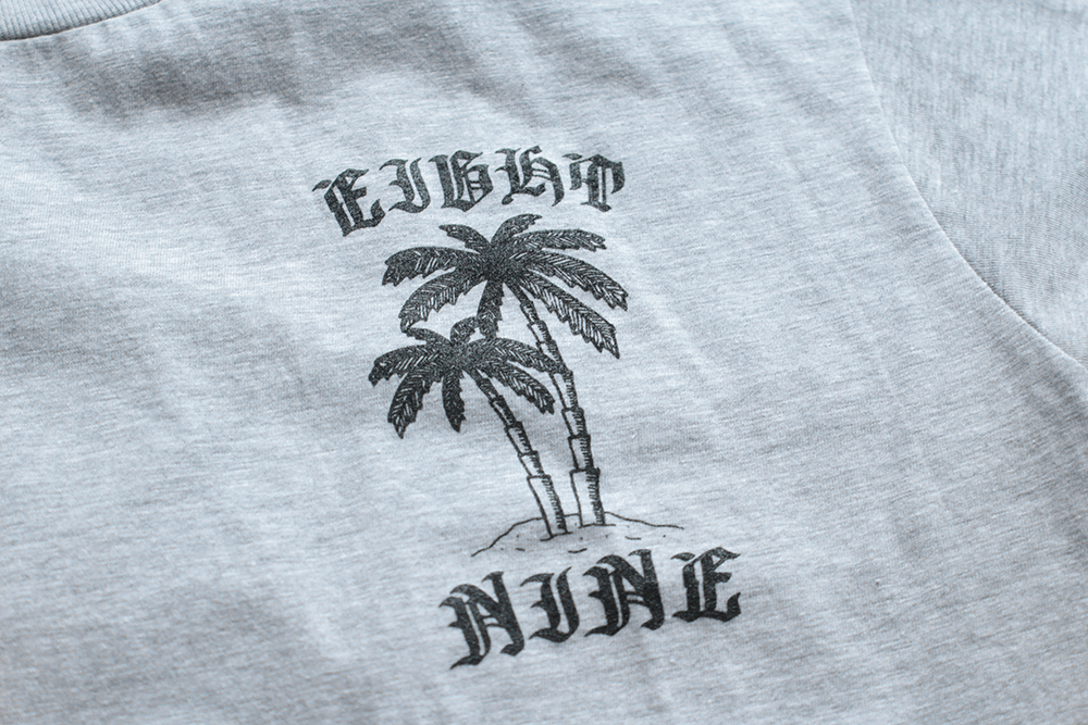 2014 Infinite Supply. OE Palm Trees Graphic. Miami Life. Simplicity reigns supreme. #8and9life Super soft ring spun cotton heather with black.