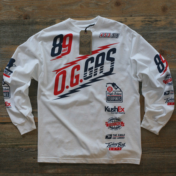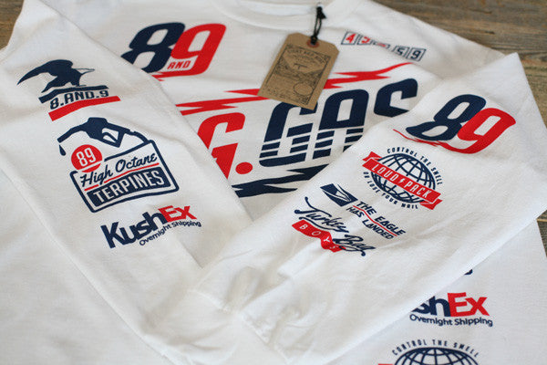 Heavyweight construction for Fall '14. OG Gas Jersey Long Sleeve Tee in USPS color scheme. #8and9life Get this one while you can. Certainly won't last long.