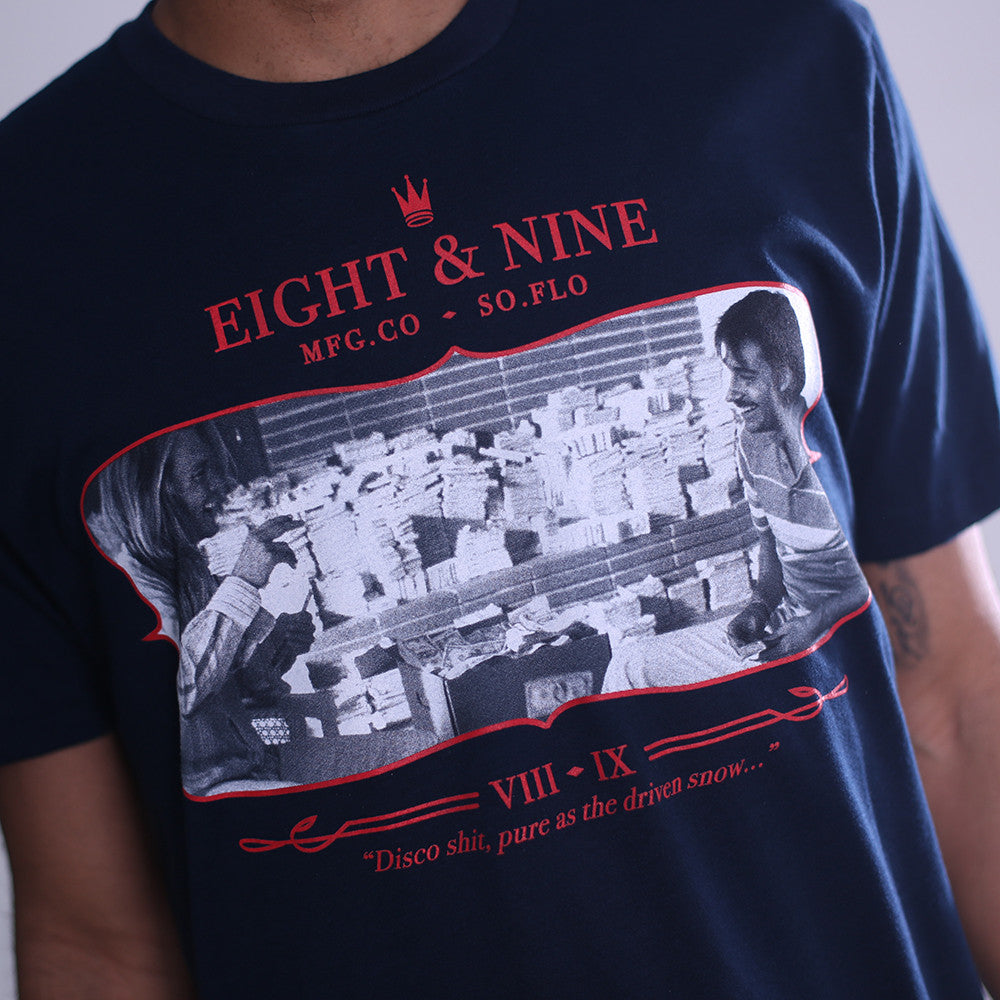 A new classic from our Norman's Cay collection in the US Olympic color scheme.  George x Diego T Shirt in navy and red. USA. Diego's character in the movie Blow portrayed the real life Carlos Lehder made his home on Norman's Cay between 1978 and 1982.  Planes, packs, profit and not enough space to hold the money. S/O Boston George too. Sneaker heads, grab this to match any of the Olympic colorway inspired releases!