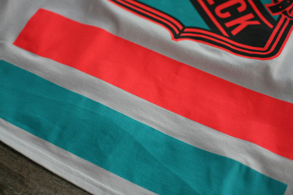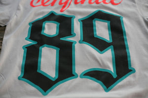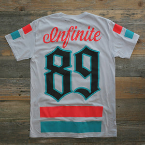2014 hockey inspired On Deck jersey tee. Classic sneaker head essential, South Beach color scheme! Inspired by the New York Rangers Jersey giant 89, INFINITE name plate. Infinite Supply #8and9life