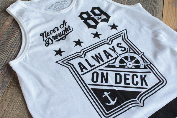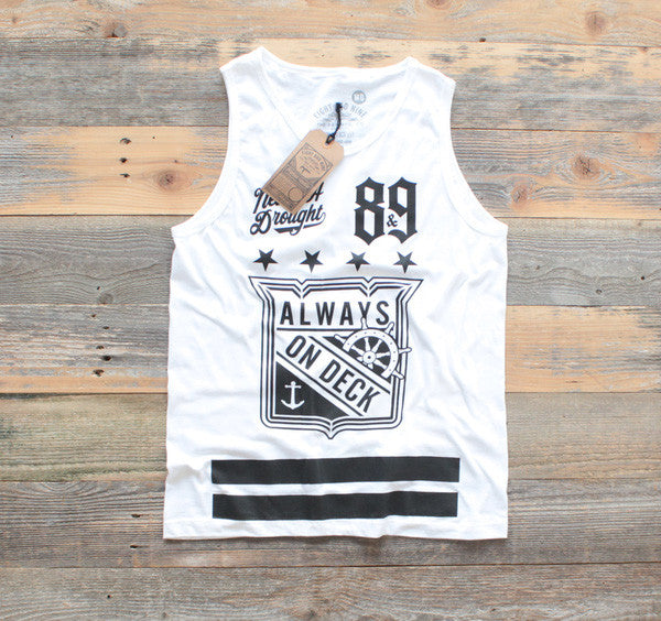 On Deck Jersey Tank Top White - (Model is wearing medium)