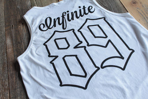 2014 hockey inspired On Deck jersey tank top. Inspired by the New York Rangers Jersey giant 89, INFINITE name plate. Classic white and black. Perfect shirt to match Jordan Concord 11s. Infinite Supply #8and9life