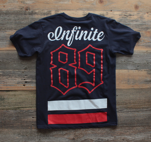 2014 hockey jersey style On Deck t shirt. Inspired by the New York Rangers Jersey giant 89, INFINITE name plate. Classic navy/red/white. Infinite Supply #8and9life