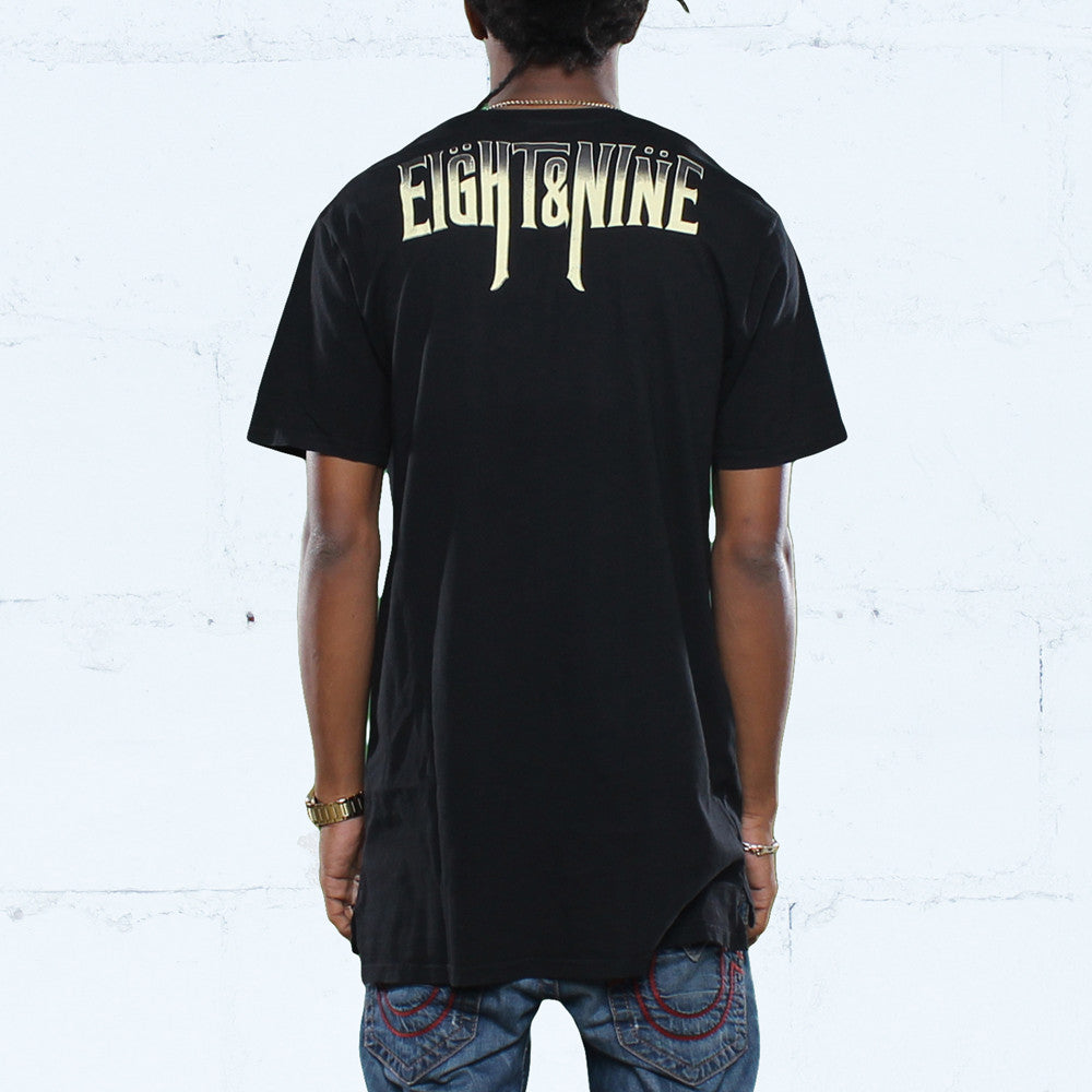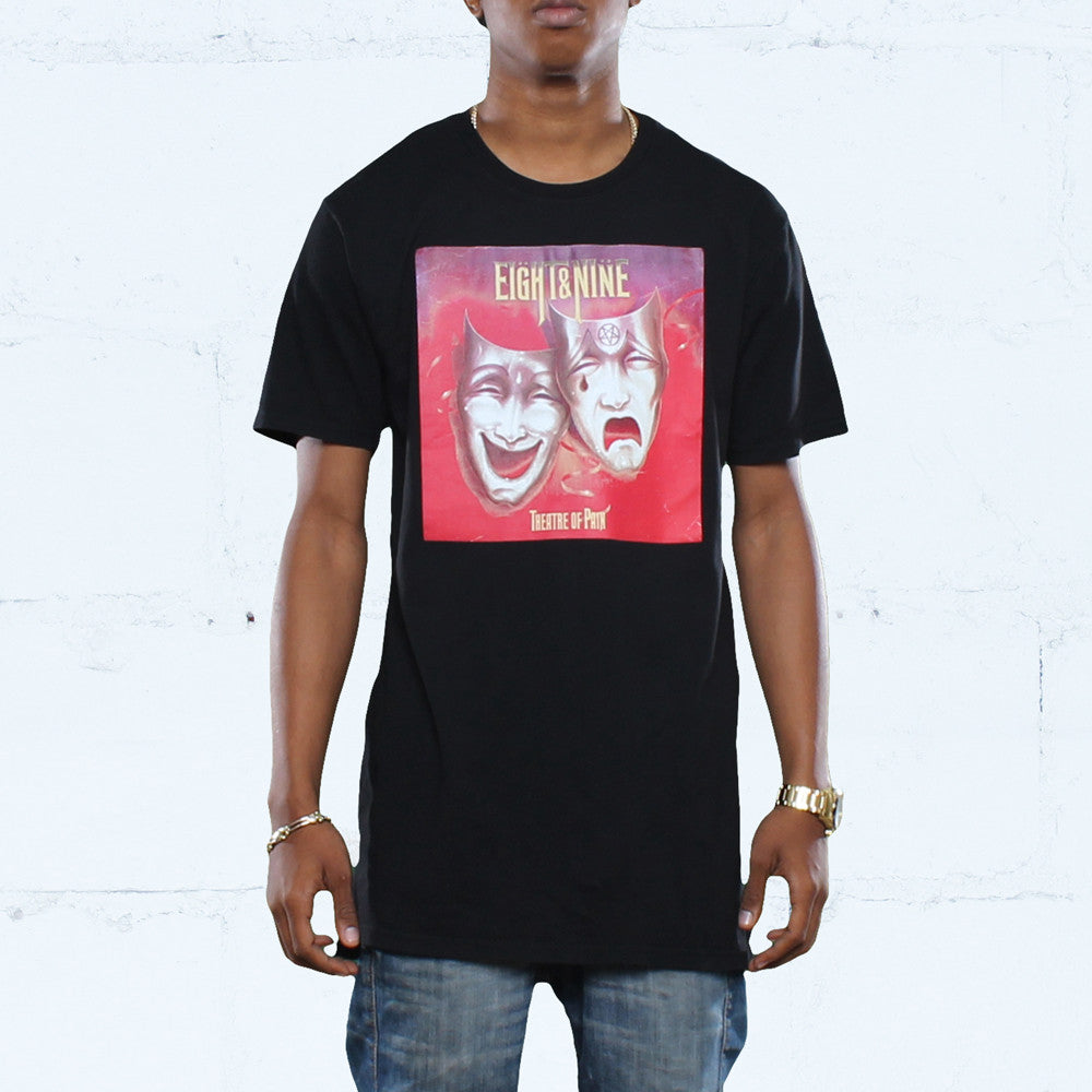 New Long Line collection. Pain Tour t shirt, '85 Crue inspired. Black tee, elongated style, Trench Mark woven. Super soft, 30 singles cut with added length for a modern fit, hi-low finish. Peep the details.