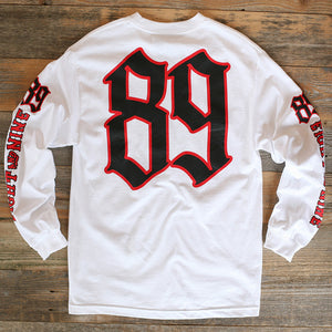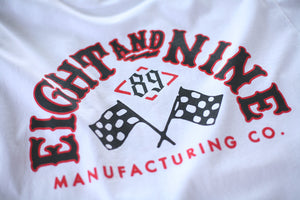 Long sleeve, Race Flags jersey tee for holiday. Classic fire red on white. Front & back hits. Winter '14 #8and9life