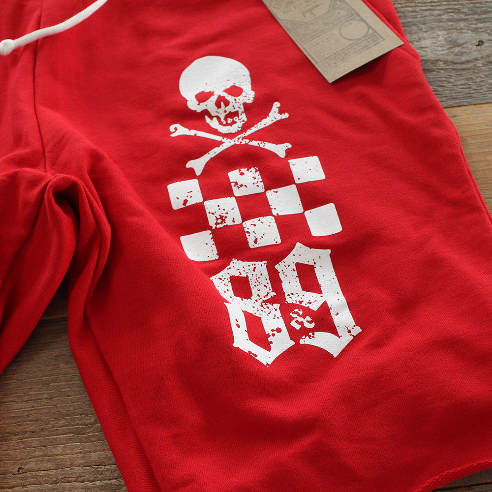 New for Summer '15 Race Team french terry shorts, race inspired. Fire Red/Black/White Super luxe 100% cotton french terry shorts made in the USA. Modern tailored fit, cut off styling w/ raw edge. Slight drop crotch, sneaker lace drawstring. #8and9life