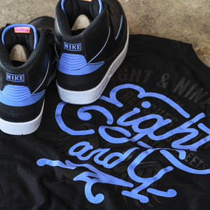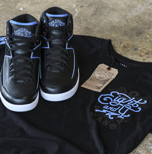 Perfect shirt to match the Radio Raheem Jordan 2. Inspired by Spike Lee's classic film "Do The Right Thing" the Radio Raheem Jordan 2 incorporates photo blue we've used on premium back cotton. Simplicity reigns supreme, grab this Radio Raheem Jordan 2 shirt while it lasts! Tee is slightly extended length (not a dress), with a curved hem and modern fit.