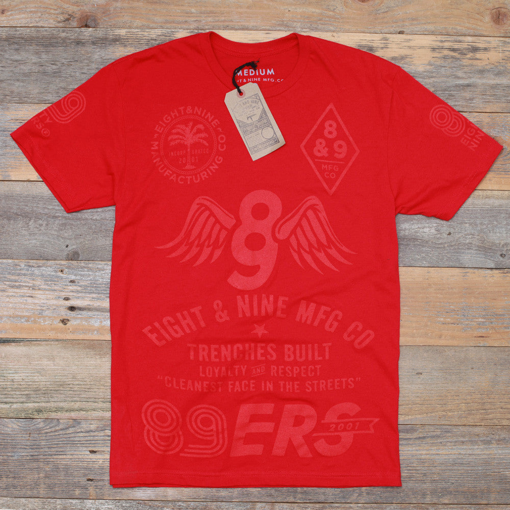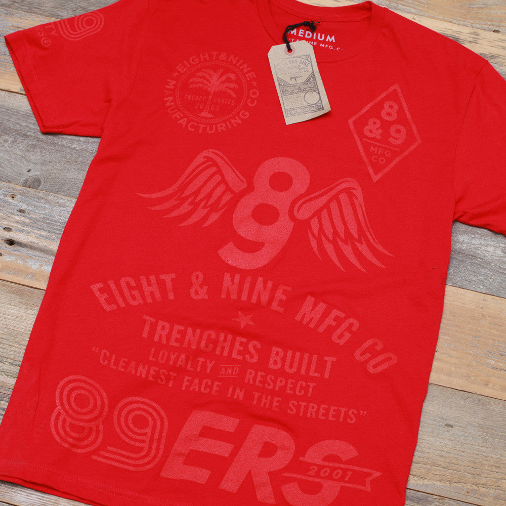 New Red Foamposite Shirt for Spring '15, Kustom Life jersey tee. Perfect shirt to match red foamposites. All about the details classic red print on red premium cotton. Trenches Built. Loyalty & Respect. "Cleanest Face In The Streets." Club inspired. #8and9life