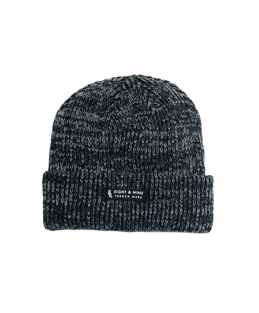 Classic blue collar vibe that never goes out of style. Ribbed Dock Beanie Black Marled. Trench Mark woven. 100% Super Soft Acrylic Knit, Ribbed, Cuffed.