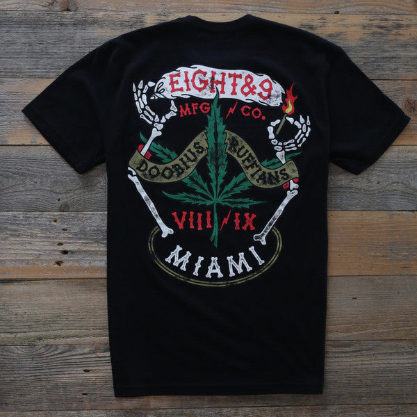 Classic. Doobius Ruffians, Roaches t shirt. Premium black cotton, red & green details. #8and9life