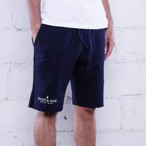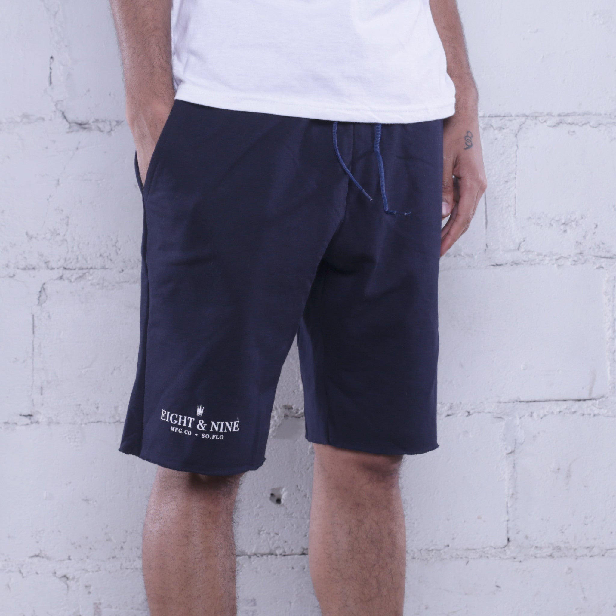 Super clean, new terry shorts for 2016. Classic navy and white color scheme! Rolee Cut Offs made from premium terry right here in the US! Simplicity reigns supreme, sneaker lace drawstring, trench mark woven, super luxe 100% cotton french terry shorts made in the USA. Modern tailored fit, cut off styling w/ raw edge. #8and9life