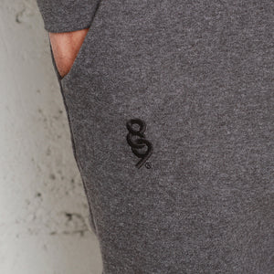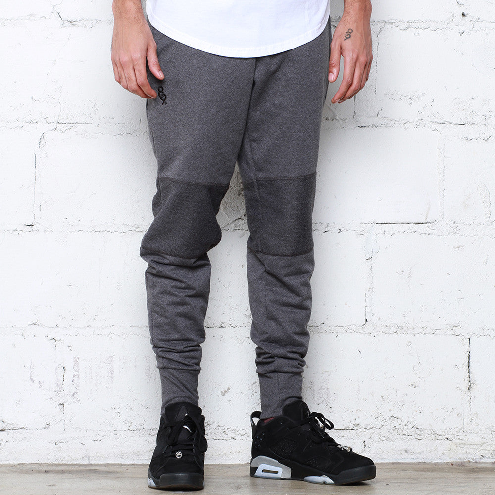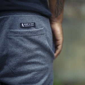New for all seasons the Rudimental terry collection. This piece, the Rudimental Paneled Joggers in charcoal are made here in the US from super luxe 100% cotton french terry. We've given our classic joggers reverse panels with cover stitch and a tonal charcoal keys embroidery. Peep the canvas trenchmark woven. Simplicity reigns supreme. Details always matter. S= 28/30 M=32 L=34 XL=36/38 2X=38/40 3X=42/44