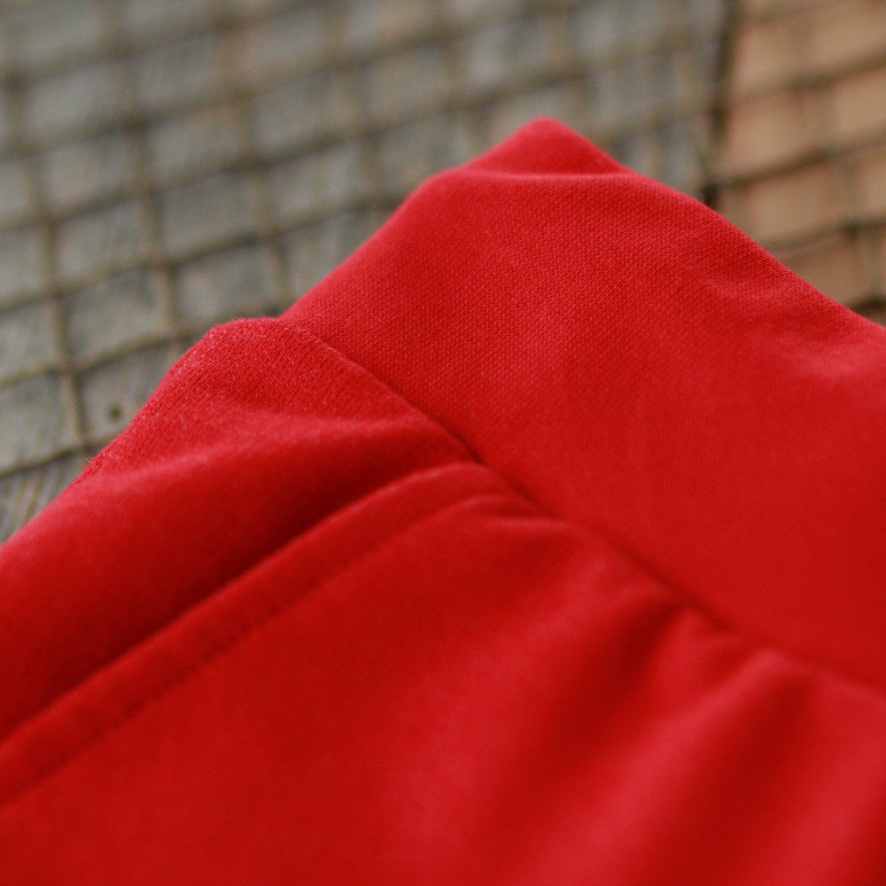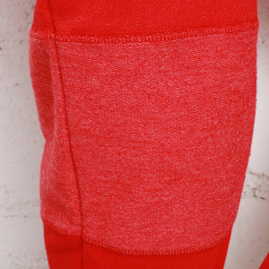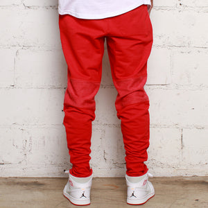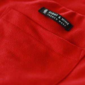 New for all seasons the Rudimental terry collection. This piece, the Rudimental Paneled Joggers in red are made here in the US from super luxe 100% cotton french terry. We've given our classic joggers reverse panels with cover stitch and a tonal red keys embroidery. Peep the canvas trenchmark woven. Simplicity reigns supreme. Details always matter.
