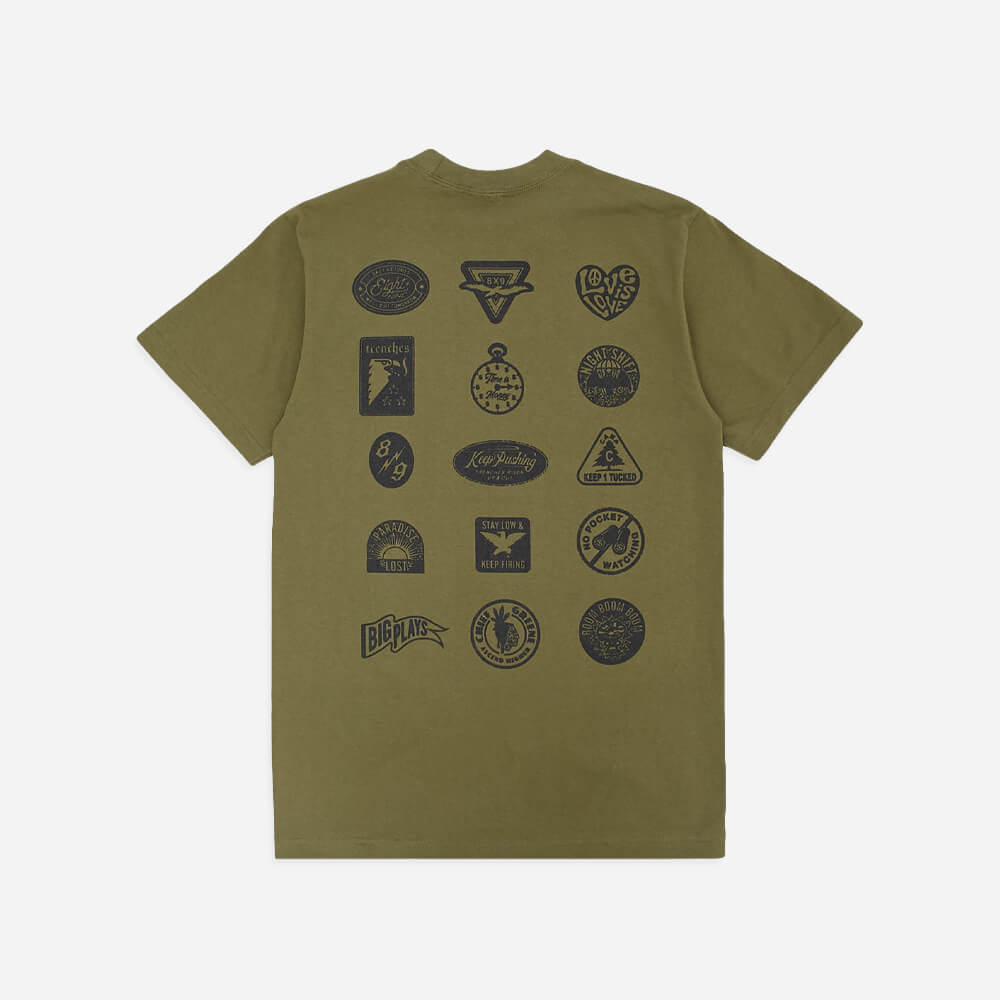 Stripes earned in The Trenches! New Scouts tee splattered with 8&9 badges! This tee is available in 2 colors while they last! Sizes small to 4xl shipping out now! #8and9MFG Matches Air Jordan Retro 4 Olive and Jordan 5 Olive!