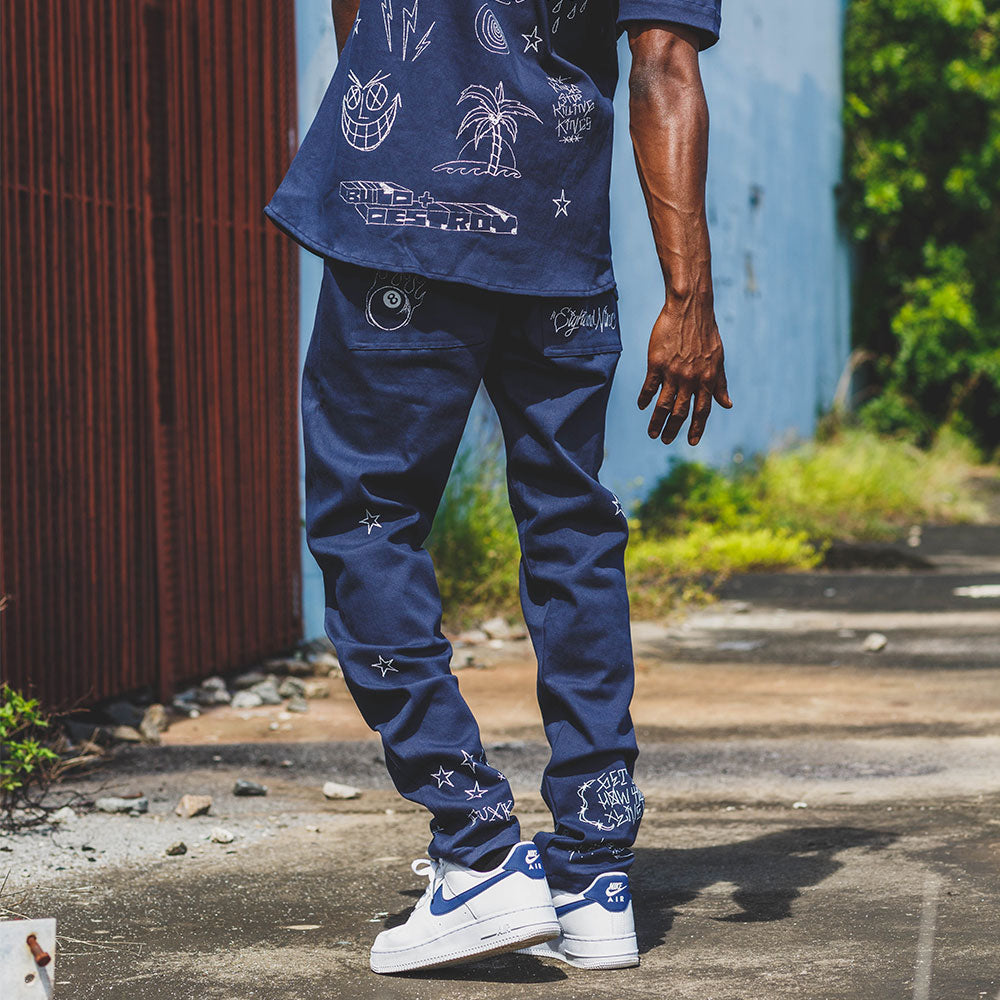 Inspired by the early 2000's, these Strapped Up Utility Pants get the job done. Modern fit, room up top slimmer below the knee, straps for custom fit. All new premium vintage washed men's utility pants with front cargo pockets, Velcro straps with MFG embroidery.