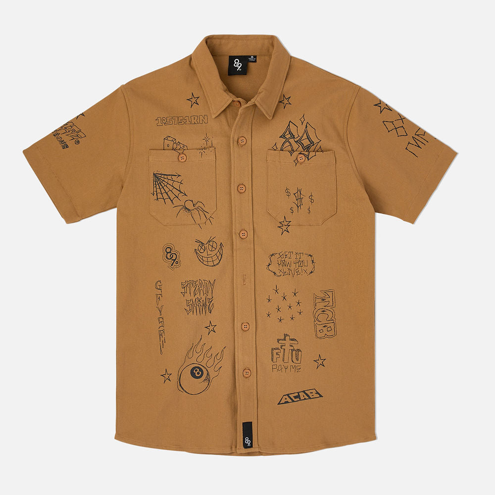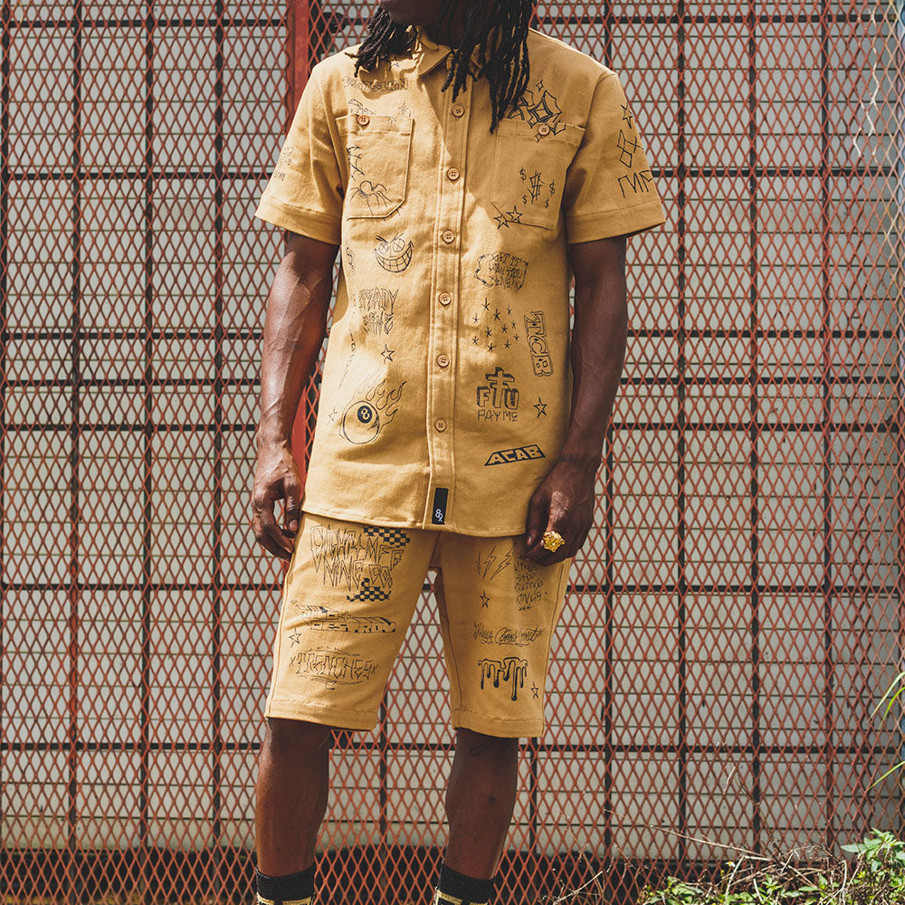 New slaughtered Scribblez work shirt added to the shop! All over, grunged out work wear by your favorite crew in the game! Matching shorts or pants available while they last!